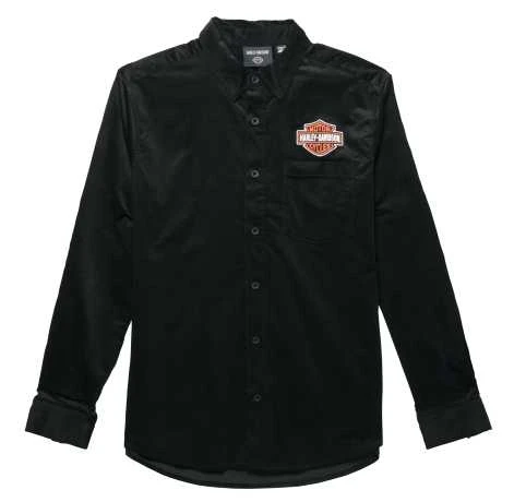 Wenn Du auf der Suche nach einem legendären Harley-Davidson Look bist, solltest Du das Limited Edition Bar & Shield Corduroy Shirt in Deinen Warenkorb legen. Es ist aus robustem Cord aus Baumwolle gefertigt, mit einem Hauch Elastan für eine nicht einschränkende Passform. Die kontrastierenden Ellbogenaufnäher sorgen für Stil und Strapazierfähigkeit, während der Kragen dank versteckter Druckknöpfe beim Fahren an seinem Platz bleibt. Mit unserem legendären Logo ein Must-have, das Du Dir jetzt holen solltest, bevor es vergriffen ist.