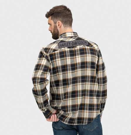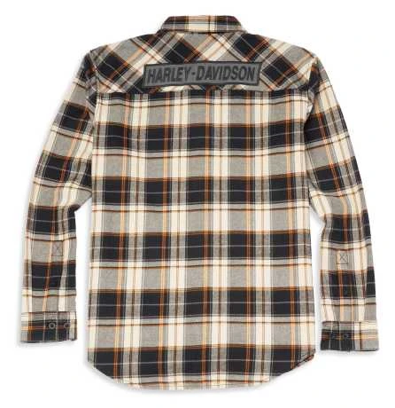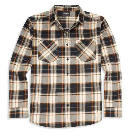 Klassisch karierter Flanell, richtig gemacht. Dieses garngefärbte, karierte Hemd aus Baumwollflanell ist mit Brusttaschen mit Knöpfen, verstellbaren Knopfmanschetten und einem verdeckten Druckknopfkragen ausgestattet, der beim Fahren nicht verrutscht. Und um das Ganze abzurunden, gibt es auf der Rückseite eine gestickte Köperapplikation.