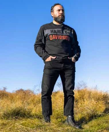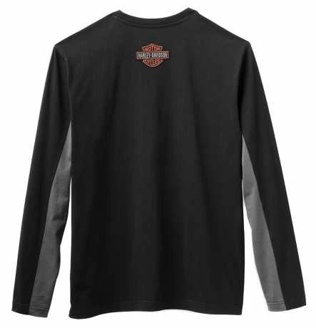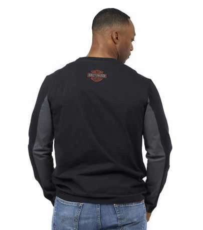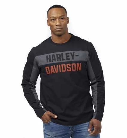 Subtilität wird überbewertet. Zeigen Sie Ihre enthusiastische Seite in dieser kühnen Mischung aus Branding, Farbe und Textur. Hergestellt aus weichem 100% Baumwoll-Jersey-Material in einem Stil, der sich selbst hält oder sich gut unter Ihrem Lieblings-H-D-Flanell, Weste oder Jacke trägt. Mit Stone-Washed-Optik und Rippstrick-Ausschnitt, um die Form zu halten.