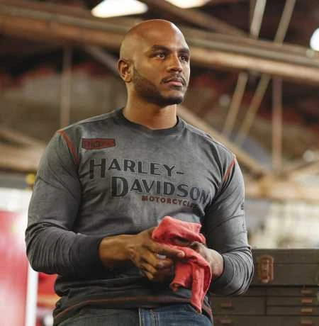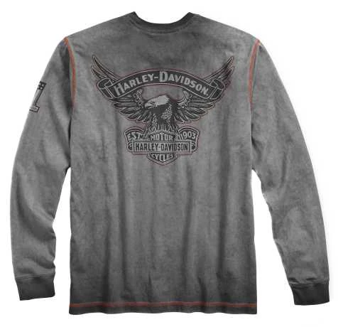 Originales Harley-Davidson Herren Longsleeve aus 100 % Baumwolljersey mit Cold-Pigment-Waschung für einen schmutzigen, eingetragenen Look.