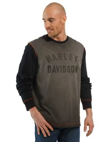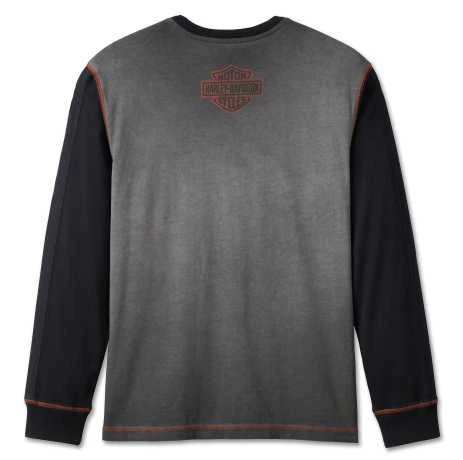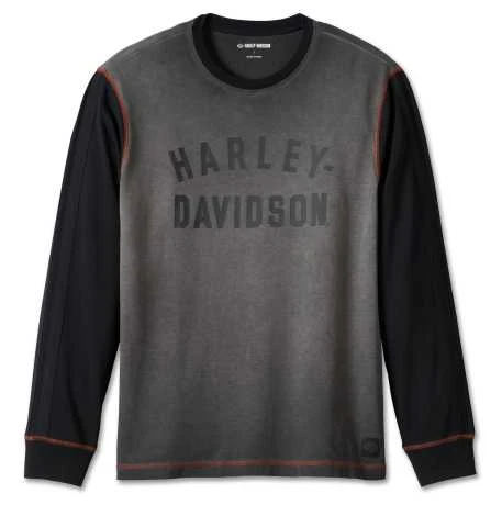 Bewährter Stil trifft bei unserem Harley-Davidson Herren Longsleeve Iron Bond auf lang anhaltenden Tragekomfort ein wichtiger Grund, warum wir dieses beliebte Modell leicht überarbeitet haben. Dieses langärmelige Herren-T-Shirt aus kuscheligem Jersey aus Baumwolle wurde speziell gewaschen, um ein verblasstes Aussehen zu erzielen und sich gut getragen anzufühlen. Die Ärmel, der Halsausschnitt und die Covernähte sind in unserem legendären Orange gehalten und bilden einen schönen Kontrast. Unser Rennsport-Logoschriftzug aus den 1930er Jahren füllt die Vorderseite, ein gewebtes Etikett mit Branding ziert den Saum, und unser heißgeliebtes Bar & Shield prangt auf der Rückseite.