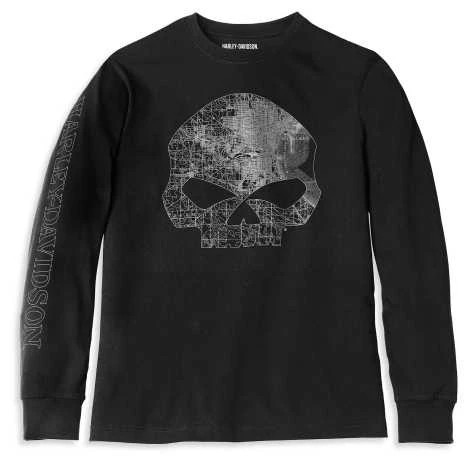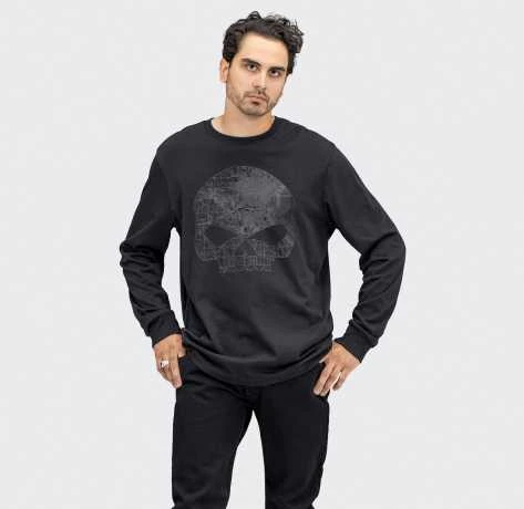 Dieses grafische Langarm-T-Shirt ist eine Hommage an unsere Heimatstadt. Es ist aus kuscheligem Baumwolljersey mit Rippstrick am Halsausschnitt gefertigt, damit es seine Form behält. Unser Skull-Logo mit Kartenmuster und unser Namensvetter auf dem Ärmel sorgen für einen einzigartigen, kultigen Look.