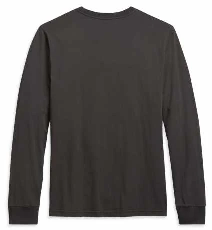 Wenn Sie gebunden werden müssen, machen Sie es mit Metall. Dieses langärmelige T-Shirt lässt sich leicht mit einer Lederjacke überziehen oder hält auch mit einem Paar Jeeans. Langarm-T-Shirt mit Rippenstrick-Ausschnitt und Ärmelbündchen.