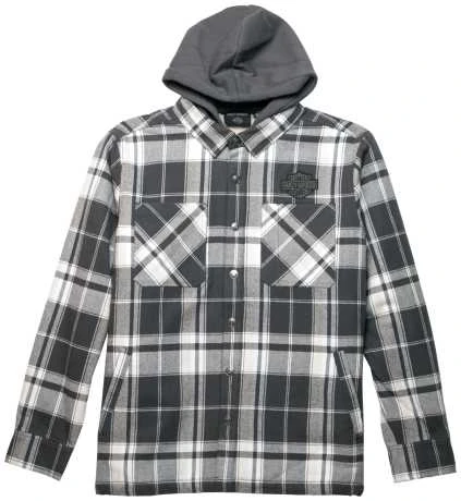 Plaid bekommt eine Kapuze, ein flauschiges Futter und einen Hauch unserer stolzen Motorradtradition in der Up North Sherpa Flannel. Diese Hemdjacke für Herren ist aus gebürstetem Baumwollköper für dauerhafte Weichheit mit einem kuscheligen Sherpa-Futter und einer Fleece-Kapuze für zusätzliche Wärme gefertigt. Sie verfügt über praktische Funktionen wie eine aufgesetzte Innentasche zum Verstauen von wichtigen Dingen, eine Belüftungsöffnung an der Rückseite und einen versteckten Umlegekragen, der während der Fahrt an Ort und Stelle bleibt. Das klassische Karomuster ist ein idealer Hintergrund für einen gestickten Filzaufnäher mit unserem kultigsten Logo.