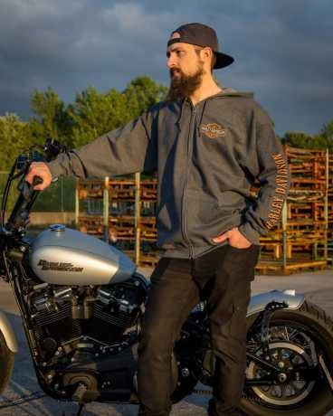 H-D Motorclothes Harley-Davidson Zip Hoodie Mini Long Logo Grau