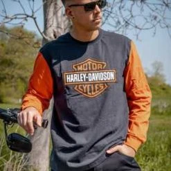 H-D Motorclothes Harley-Davidson Longsleeve Colorblocked Bar & Shield Schwarz/orange