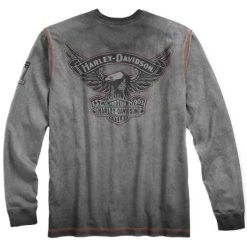 H-D Motorclothes Harley-Davidson Longsleeve Henley Skull Grau Meliert