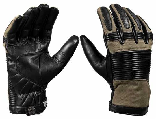 Der Durango aus 100% Rindsleder wurde im stilsicheren Wave Design enworfen und setzt sich bei der Auswahl im Kleiderschrank für jede Ausfahrt an die Polepostition. Die Farbpalette greift Elemente aus unserer Stroker Cargo und Motoshirt Kollektion auf und ermöglicht eine enorme Vielzahl an Kombinationsmöglichkeiten. Eine ergonomische Passform mit vorgebeugter Fingerführung/Polsterung sorgt für sicheren Halt und Gefühl am Motorradlenker und auf dem Bike. Des Weiteren kann mittels eines Druckknopfs am Handgelenk der Handschuh zusätzlich enger oder weiter gestellt werden. Beim Fahren verstärkt sich die Patina seines Vintage-Leders nach und nach durch jedes Einzelne tragen und erzählt somit schon nach kurzer Zeit die ganz individuelle Geschichte seines Fahrers. Die einzigartigen high-performance Schutzeigenschaften erzielt dieser Handschuh dabei durch ein Zusammenwirken aus 1,0 -1,1 mm abriebfestem Rindsleder und unserer XTM-Fiber ® Membran (Fasertechnologie aus Aramid Faser / Coolmax ® und Lycra ®) an den Handinnenflächen des Handschuhs.