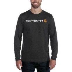 Carhartt Heavyweight Longsleeve Logo Graphic Carbon Grau Meliert